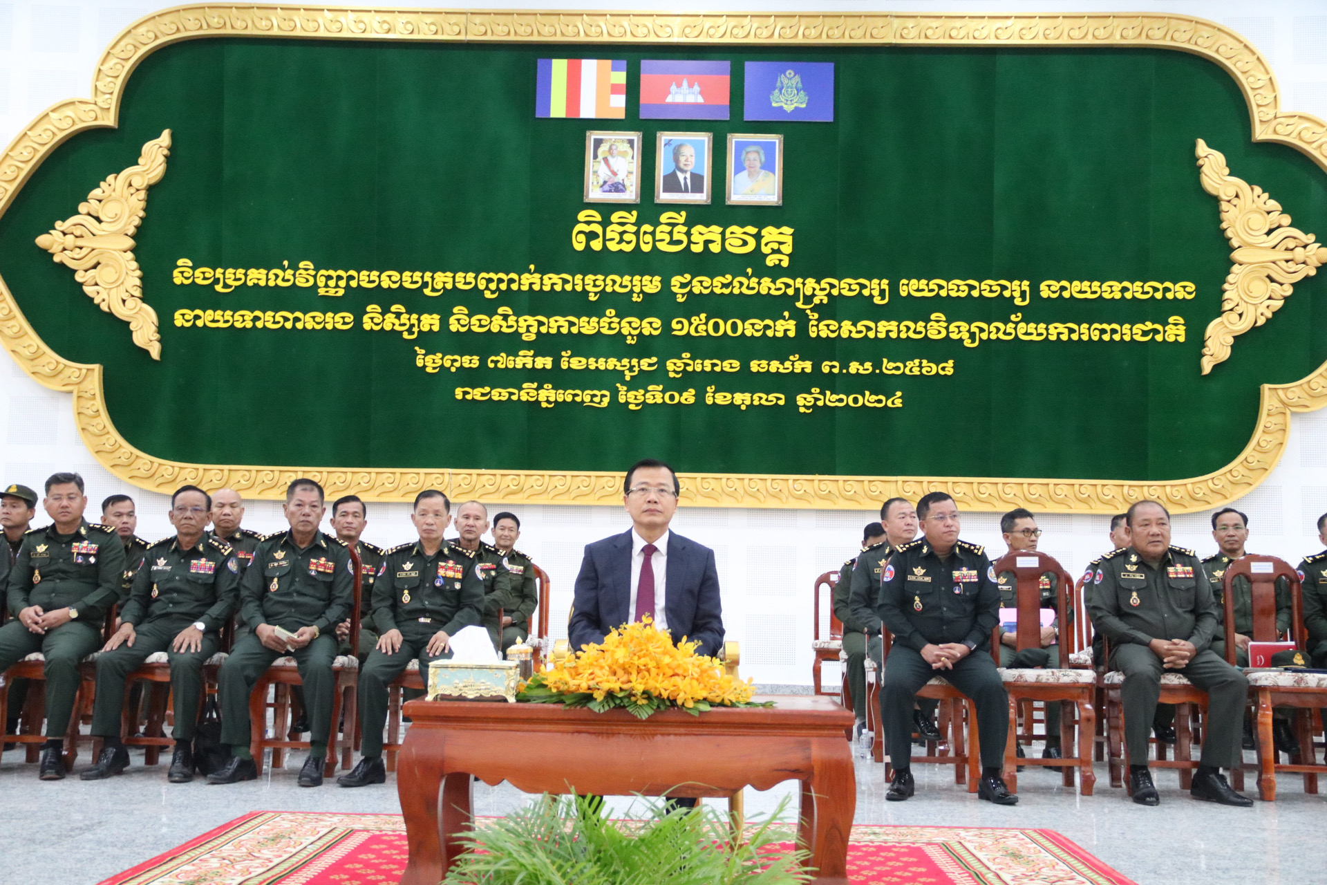 នាថ្ងៃពុធ ៧ កើត ខែអស្សុជ ឆ្នាំរោង ឆស័ក ព.ស ២៥៦៨ ត្រូវនឹងថ្ងៃទី០៩ ខែតុលា ឆ្នាំ២0២៤ សាកលវិទ្យាល័យការពារជាតិបានសហការជាមួយមជ្ឈមណ្ឌលបណ្ដុះបណ្ដាលវិជ្ជាជីវៈ នៃក្រសួងរៀបចំដែនដី នគរូបនីយកម្ម និងសំណង់រៀបចំវគ្គបណ្ដុះបណ្ដាលជូនដល់សិក្ខាកាមជាបុគ្គលិកអប់រំ និស្សិត និងសិក្ខាកាមនៃសាកលវិទ្យាល័យការពារជាតិចំនួន ១៥០០នាក់ ស្ដីពីច្បាប់ និងឯកសារបទដ្ឋានគតិយុត្ដពាក់ព័ន្ធក្របខណ្ឌក្រសួងរៀបចំដែនដី នគរូបនីយកម្ម និងសំណង់នៅសាលសហសិក្សានៃសាកលវិទ្យាល័យការពារជាតិ។