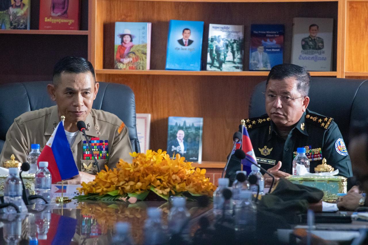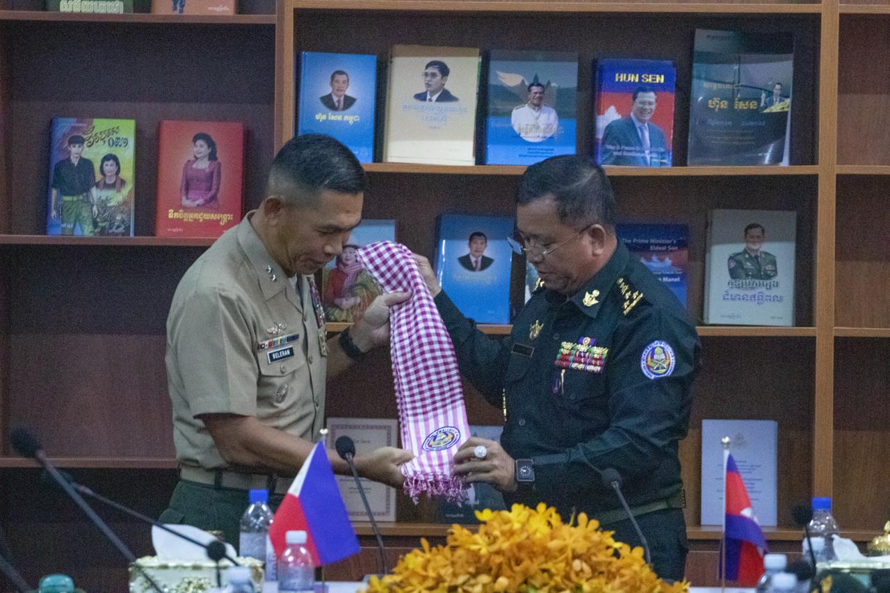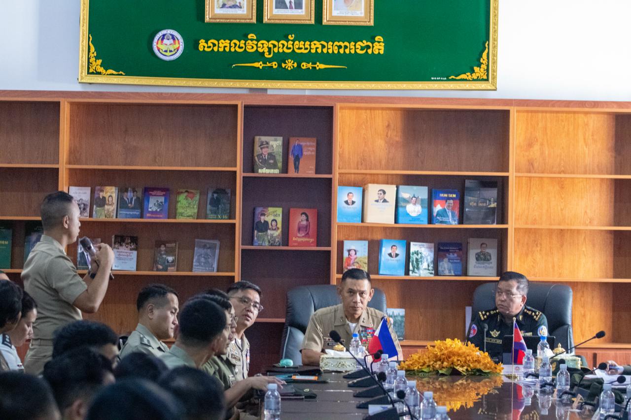 នារសៀលថ្ងៃច័ន្ទ ៤ រោច ខែអស្សុជ ឆ្នាំរោង ឆស័ក ព.ស ២៥៦៨ ត្រូវនឹងថ្ងៃទី២១ ខែតុលា ឆ្នាំ២0២៤ ឯកឧត្ដម ឧត្ដមសេនីយ៍ឯក ដោក សុផា សាកលវិទ្យាធិការ សាកលវិទ្យាល័យការពារជាតិបានអនុញ្ញាតឱ្យប្រតិភូវគ្គបញ្ជាការសេនាធិការហ្វីលីពីនដឹកនាំដោយ ឧត្ដមសេនីយ៍ទោ Noel D Beleran ប្រធានគណៈប្រតិភូចូលជួបសម្ដែងការគួរសម ពិភាក្សាការងារ និងផ្លាស់ប្ដូរបទពិសោធន៍ក្នុងឱកាសដំណើរទស្សនកិច្ចសិក្សាមកកាន់ព្រះរាជាណាចក្រកម្ពុជា។