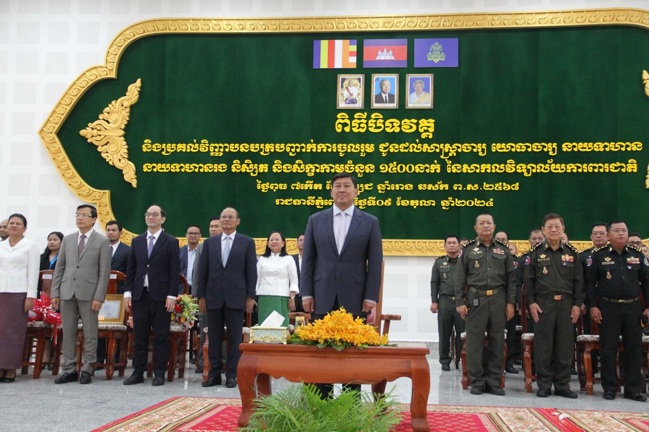 សាកលវិទ្យាល័យការពារជាតិមានកិត្តិយសសូមគោរពថ្លែងអំណរគុណ ឯកឧត្តម សាយ សំអាល់ ឧបនាយករដ្ឋមន្ត្រី រដ្ឋមន្ត្រីក្រសួងរៀបចំដែនដី នគរូបនីយកម្ម និងសំណង់ ដែលបានផ្ដល់វត្តមានដ៏ខ្ពង់ខ្ពស់អញ្ជើញជាអធិបតីក្នុងកម្មវិធីបិទវគ្គបណ្ដុះបណ្ដាលពីច្បាប់ និងឯកសារបទដ្ឋានគតិយុត្ដពាក់ព័ន្ធក្របខណ្ឌក្រសួងរៀបចំដែនដី នគរូបនីយកម្ម និងសំណង់នៅសាកលវិទ្យាល័យការពារជាតិ។