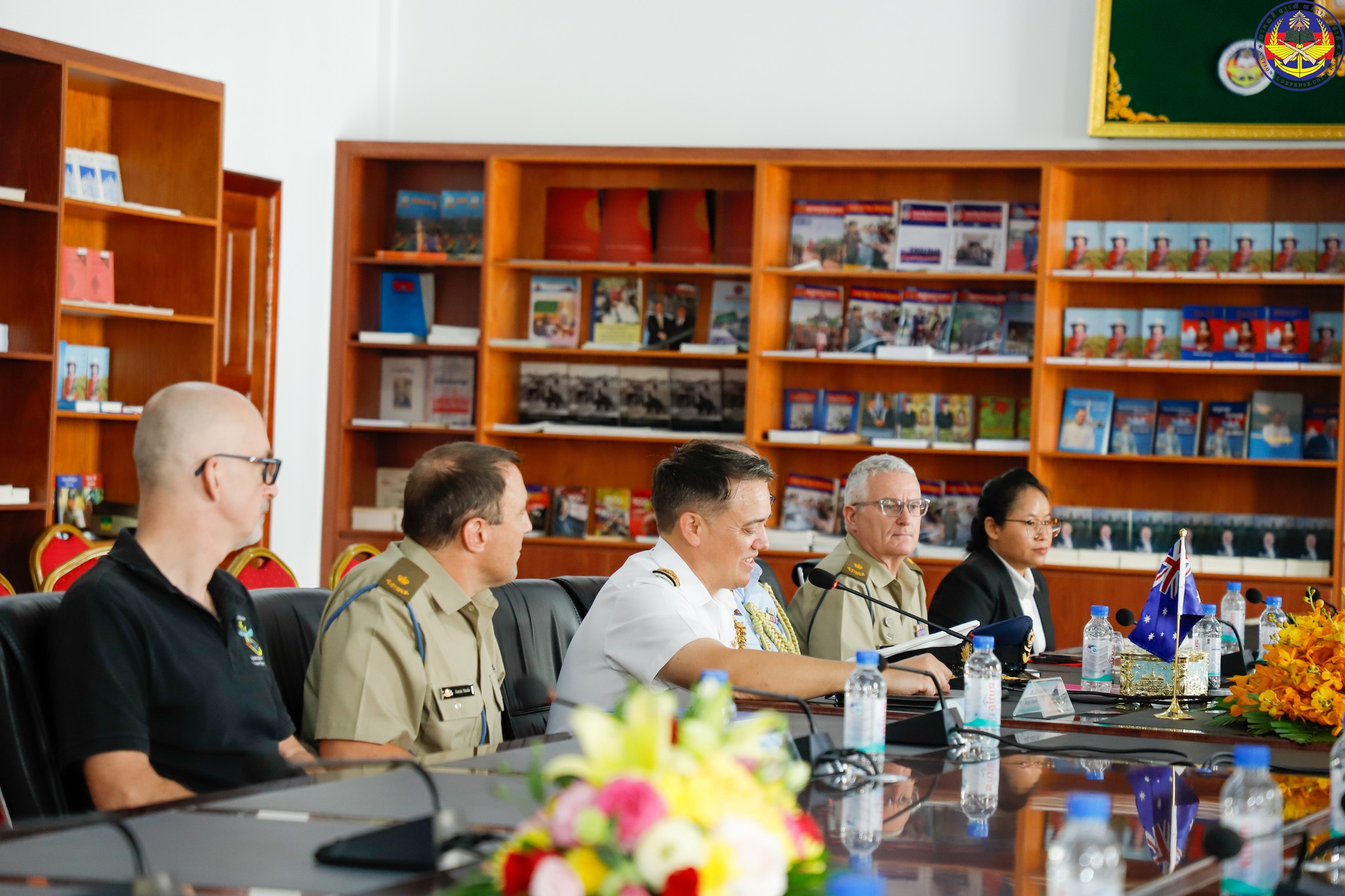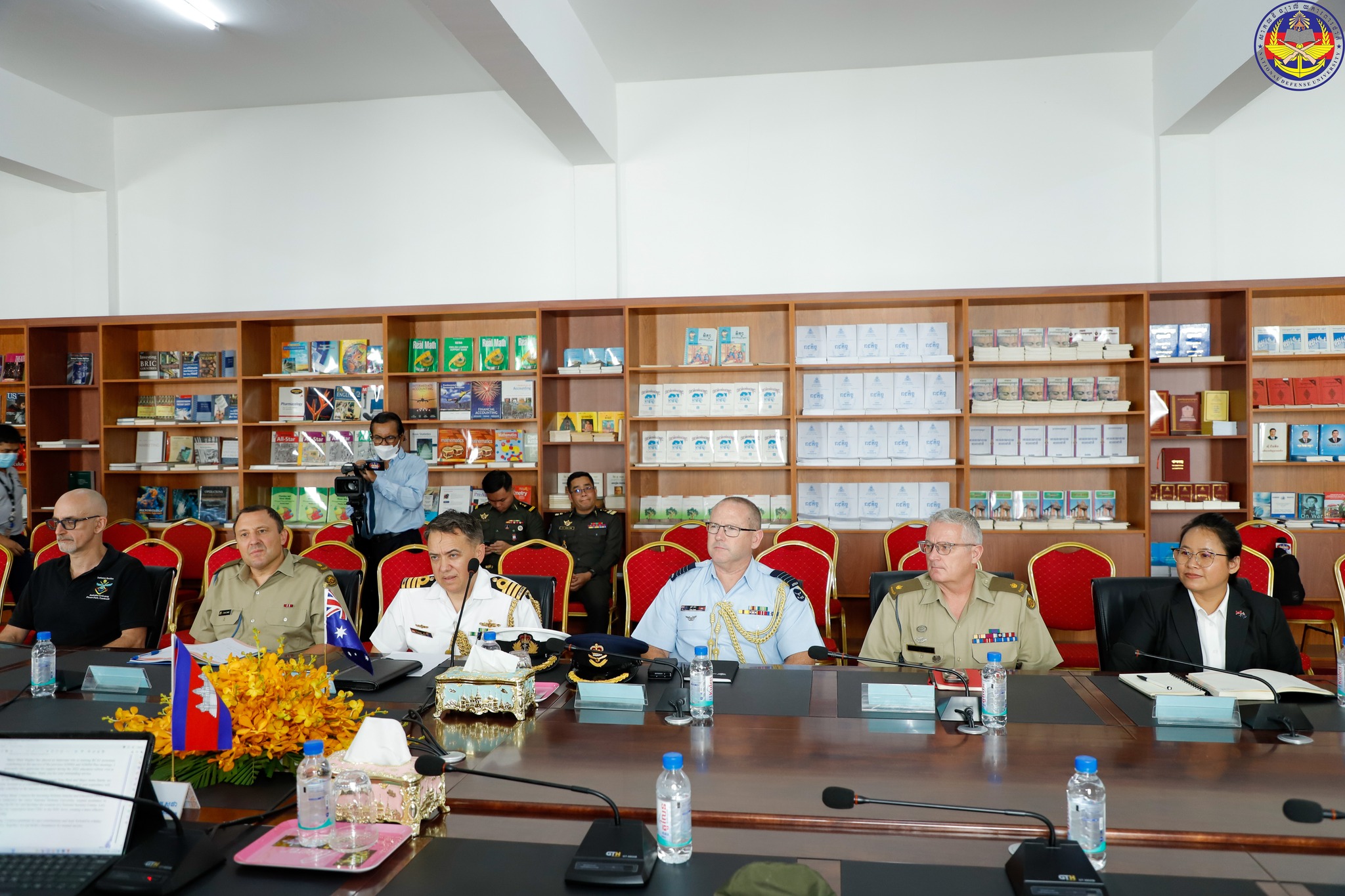 On the afternoon of Monday, January 15, 2024, His Excellency Lt. General DOK Sopha, Rector of the National Defense University, received a Courtesy Call from the Australian delegation led by Captain Bernard YORK, RAN, the outgoing Australian Defense Attaché to the Kingdom of Cambodia for a farewell protocol visit and to introduce Group Captain Tony PECK, the incoming Australian Defense Attaché. On this occasion, Captain Bernard YORK also introduced Major Jamie STEELE, the new Defense Cooperation Education Officer, who will replace the outgoing Major Mark HUGHES.