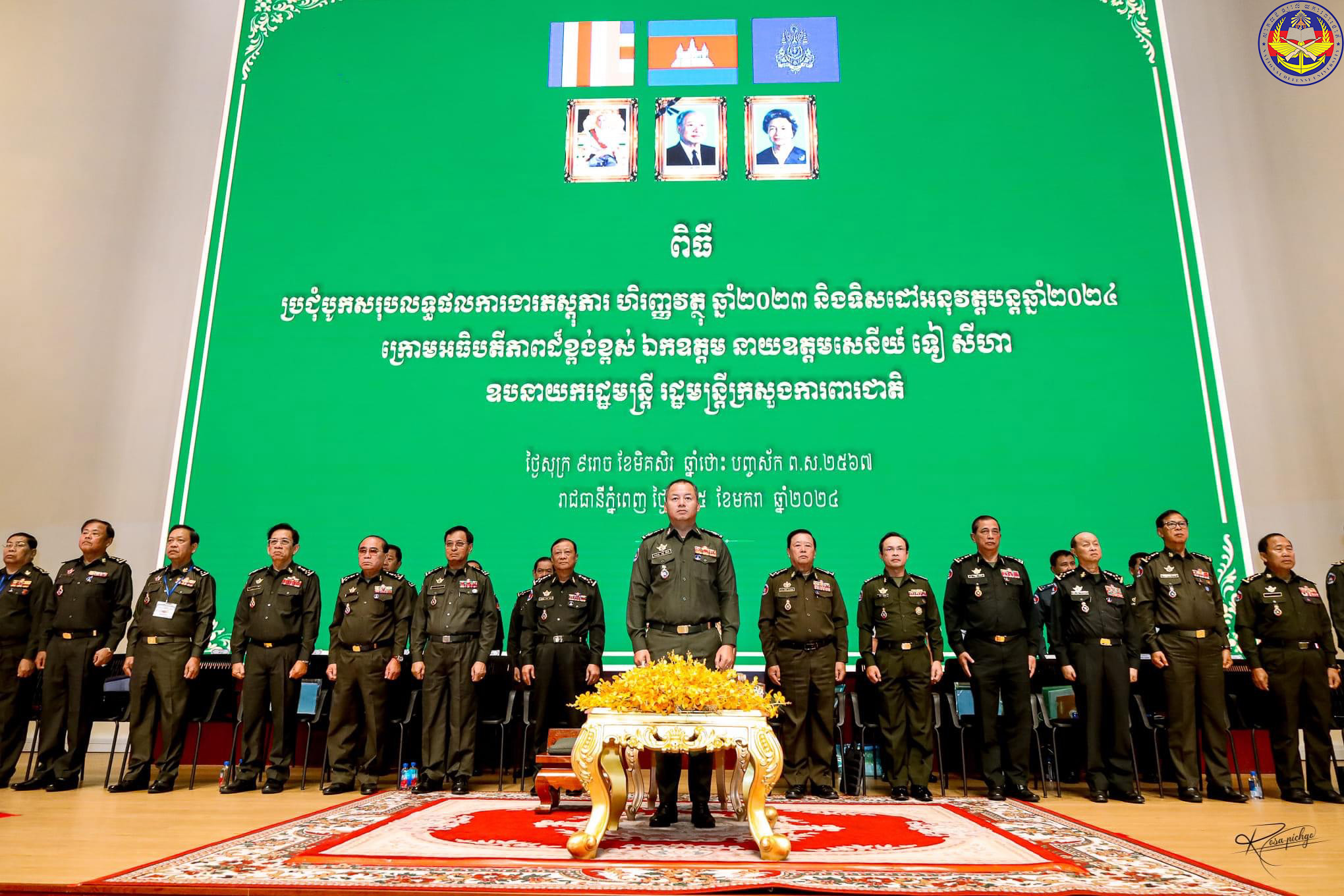 On the morning of Friday, January 5, 2024, His Excellency Lt. General DOK Sopha, Rector of the National Defense University, attended a meeting to conclude the financial and logistical works of 2023 and direct implementation plan for 2024, and a meeting with the Financial and logistical officers throughout the Royal Cambodian Armed Forces under the high presidency of His Excellency General TEA Seiha, Deputy Prime Minister and Minister of National Defense at the Ministry of National Defense.